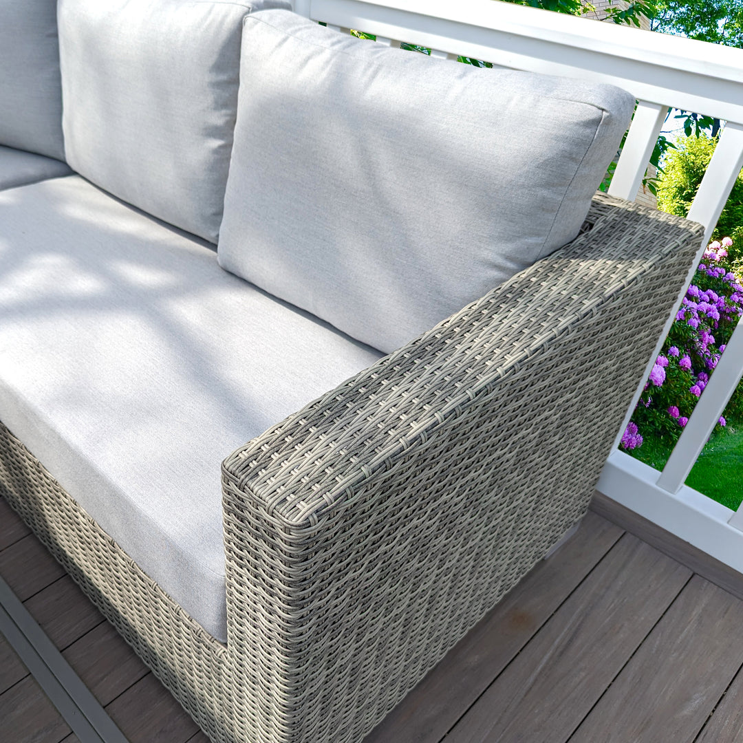 Experience the perfect blend of comfort and versatility with the Aya Wicker 4-Piece Corner Sectional. Designed for comfort, this set offers exceptional seating with an ideal seat height and plush cushions. Crafted for durability and style, Aya brings timeless elegance to your outdoor space.