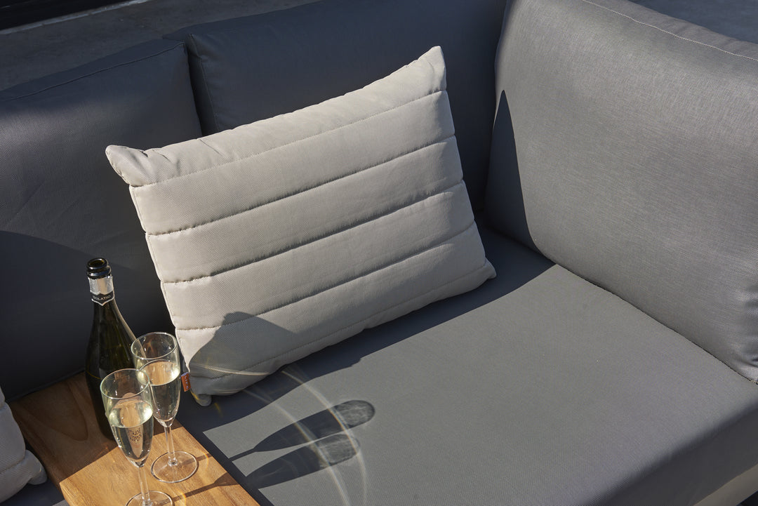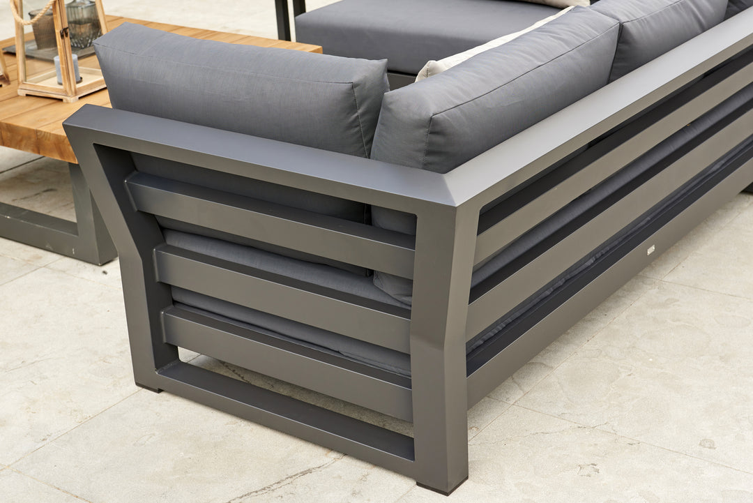 The elegant Nevada Lounge Set is a real eye-catcher for your outdoor deck or patio. Your guests will feel invited to take a seat and relax, thanks to the voluminous Sunbrella seat and back-cushions. This is a conversational and spacious set where you can welcome all your friends and family.